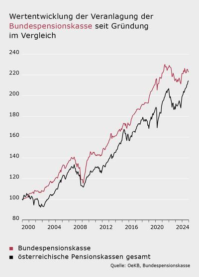Der langfristige Veranlagungserfolg aller Veranlagungs- und Risikogemeinschaften seit Gründung der Bundespensionskasse zeigt, dass sich unser Veranlagungsmix bewährt hat.